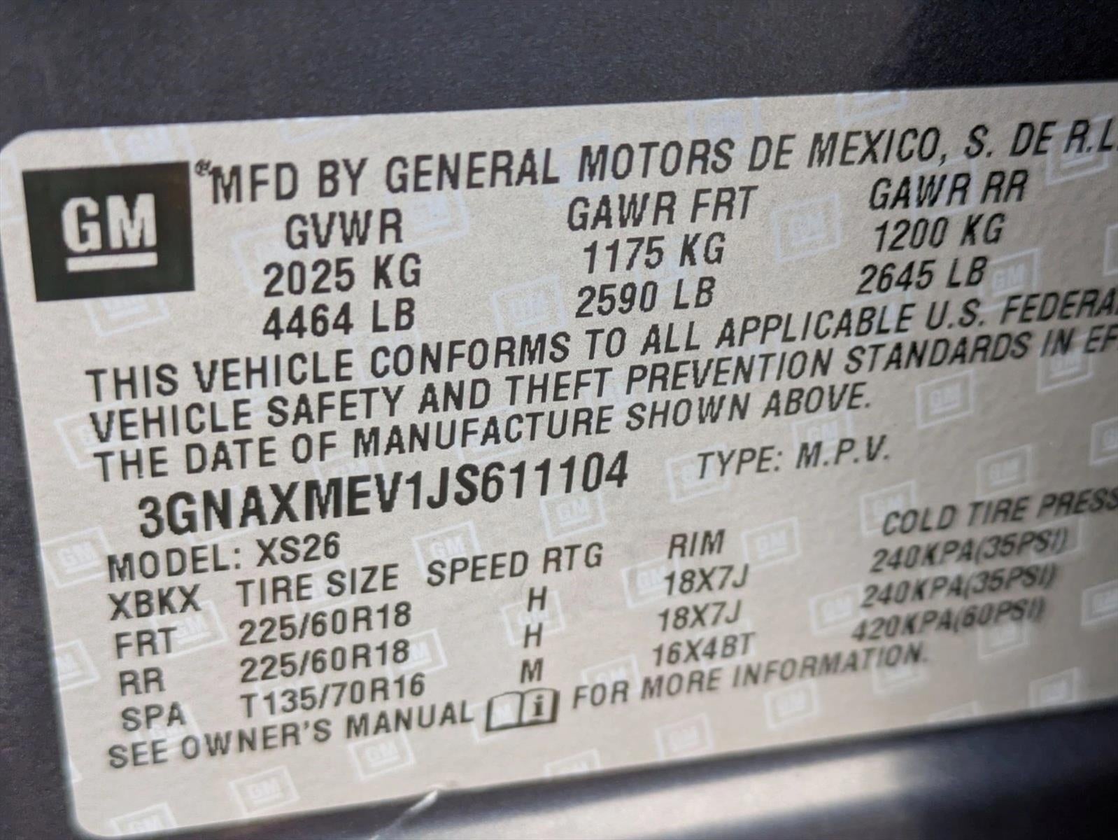 - Tires; P225/60R18 All-Season Blackwall