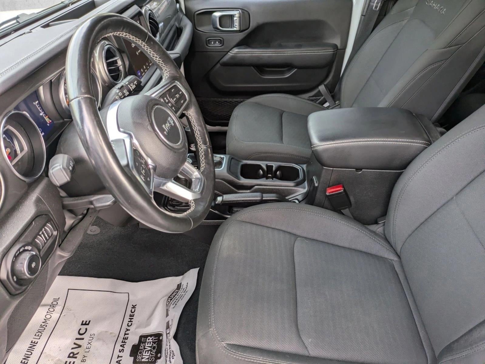Thank you for your interest in one of Lexus of Tampa Bay's online offerings. Please continue for more information regarding this 2022 Jeep Wrangler Unlimited Sahara with 19,068mi. This Jeep includes: ENGINE: 2.0L I4 DOHC DI TURBO W/ESS 4 Cylinder Engine Gasoline Fuel Turbocharged *Note - For third party subscriptions or services, please contact the dealer for more information.* If you're going to purchase a pre-owned vehicle, why wouldn't you purchase one with CARFAX one-owner report. This versatile SUV is perfect for families or contractors with its oversized cargo area, exceptional horsepower and option upgrades. Quality and prestige abound with this Jeep Wrangler Unlimited Sahara. With 4WD, you can take this 2022 Jeep Wrangler Unlimited Sahara to places roads don't go. It's all about the adventure and getting the most enjoyment out of your new ride. It's not often you find just the vehicle you are looking for AND with low mileage. This is your chance to take home a pre-owned and barely driven Jeep Wrangler. Find the quickest driving route in this Jeep Wrangler Unlimited Sahara using the installed navigation system. This nav system is one of the easiest to use and will help get you where you need to go quickly! With complete records on this pre-owned vehicle, you'll have peace of mind and the satisfaction in knowing your new purchase is safe and reliable. Although this 2022 Jeep Wrangler Unlimited Sahara is technically a pre-owned vehicle, the clean and spotless interior could fool even the toughest critic.